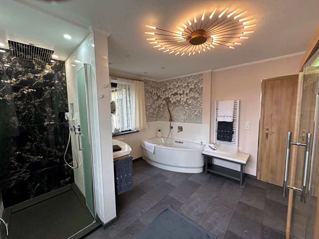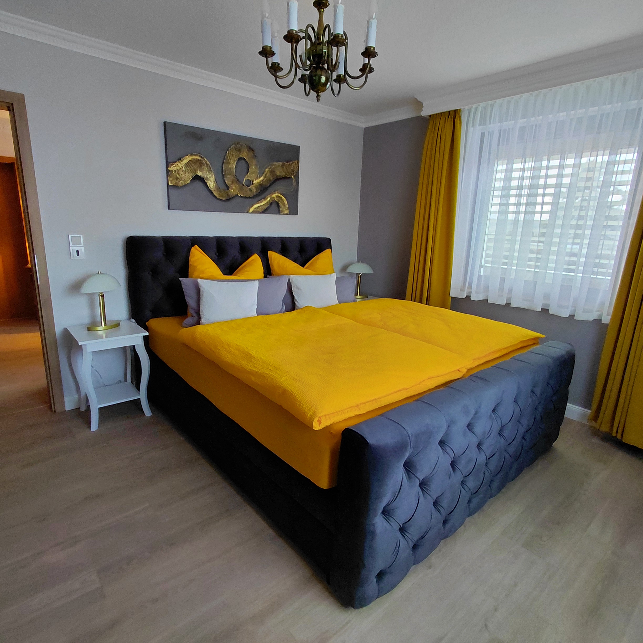 Wir bieten eine exklusive, durch den DTV zertifizierte 5- Sterne Ferienwohnung für zwei Personen. Die Ferienwohnung befindet sich im 1. Obergeschoss unseres vollständig sanierten Zweifamilienhauses, verfügt über eine Wohnfläche von 63 m² und hat vier Zimmer. Es erwartet sie unter anderem eine Wellnessoase mit Infrarot-Sauna für zwei Personen, Badewanne und bodengleiche Dusche, ein Schlafzimmer mit Boxspringbett, eine gemütliche neue Wohnküche im italienischen Stil mit TV und ein Lese-und Ruhezimmer mit Kamin. Ihnen steht ein Peloton- Fahrrad und eine Yogamatte zur privaten Verfügung.